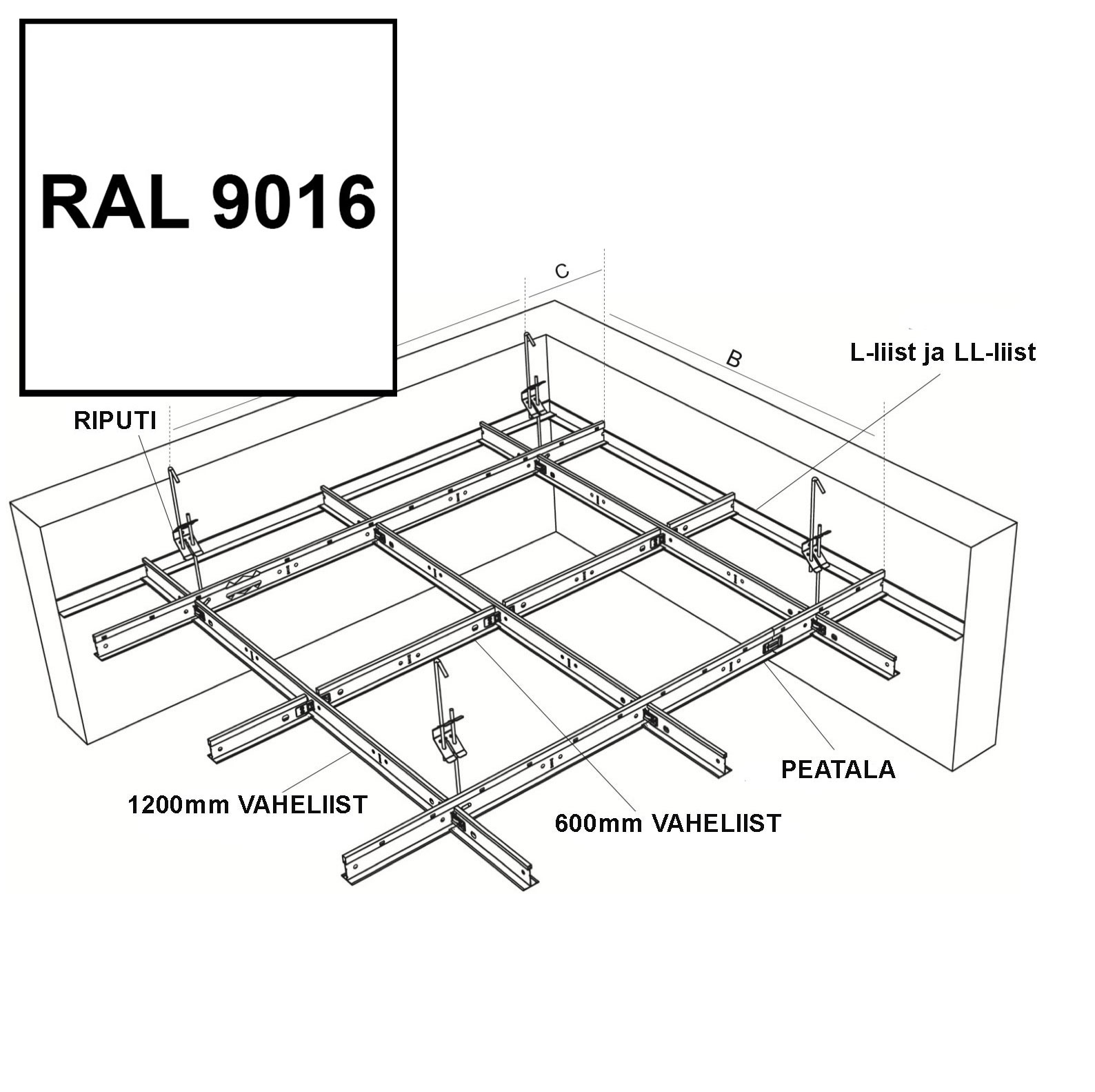 CMC T-nauhan suora ripustus 80 mm / kpl
