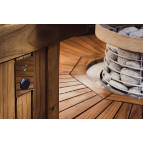 Kaikki perustoiminnot ovat samat HUUM-mobiilisovelluksessa ja ohjauspaneelin valikossa. Voit helposti asettaa esimerkiksi lämmityksen aloitus- ja lopetusajan, tavoitelämpötilan sekä tarkistaa saunan senhetkisen lämpötilan. Sovelluksen ilmoitus ilmoittaa, kun sauna on lämmin. Ohjausjärjestelmään voidaan liittää myös saunan valaistus, ilmanvaihto ja höyrystin. Turvallisuudesta huolehtivat ylikuumenemissuoja ja ohjauspaneelin lapsilukko.