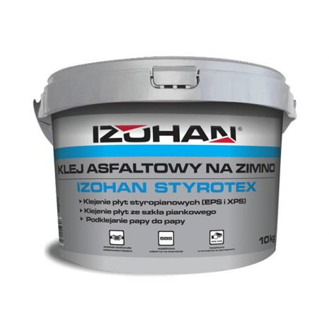 Kumibitumiliima Izohan Styrotex on tarkoitettu käytettäväksi pinnoitteena monikerroksisissa kattorakenteissa tai yksi- ja kaksipuolisten bitumilaminoitujen lämmöneristyslevyjen kiinnittämiseen mineraali- ja bitumipohjaisille alustoille (erityisesti EPS ja XPS). Materiaalikulutus on 0,5 kg neliömetrille.