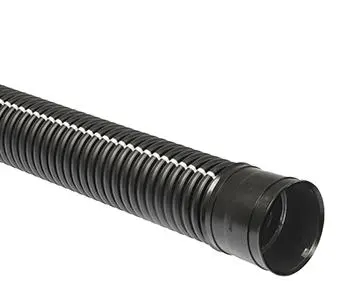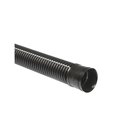 Uponor-salaojaputki rakennusten ympärysten ja piha-alueiden kuivattamiseen. Mustassa putkessa on valkoinen raita. Sileä sisäpinta ja profiiloitu ulkopinta.